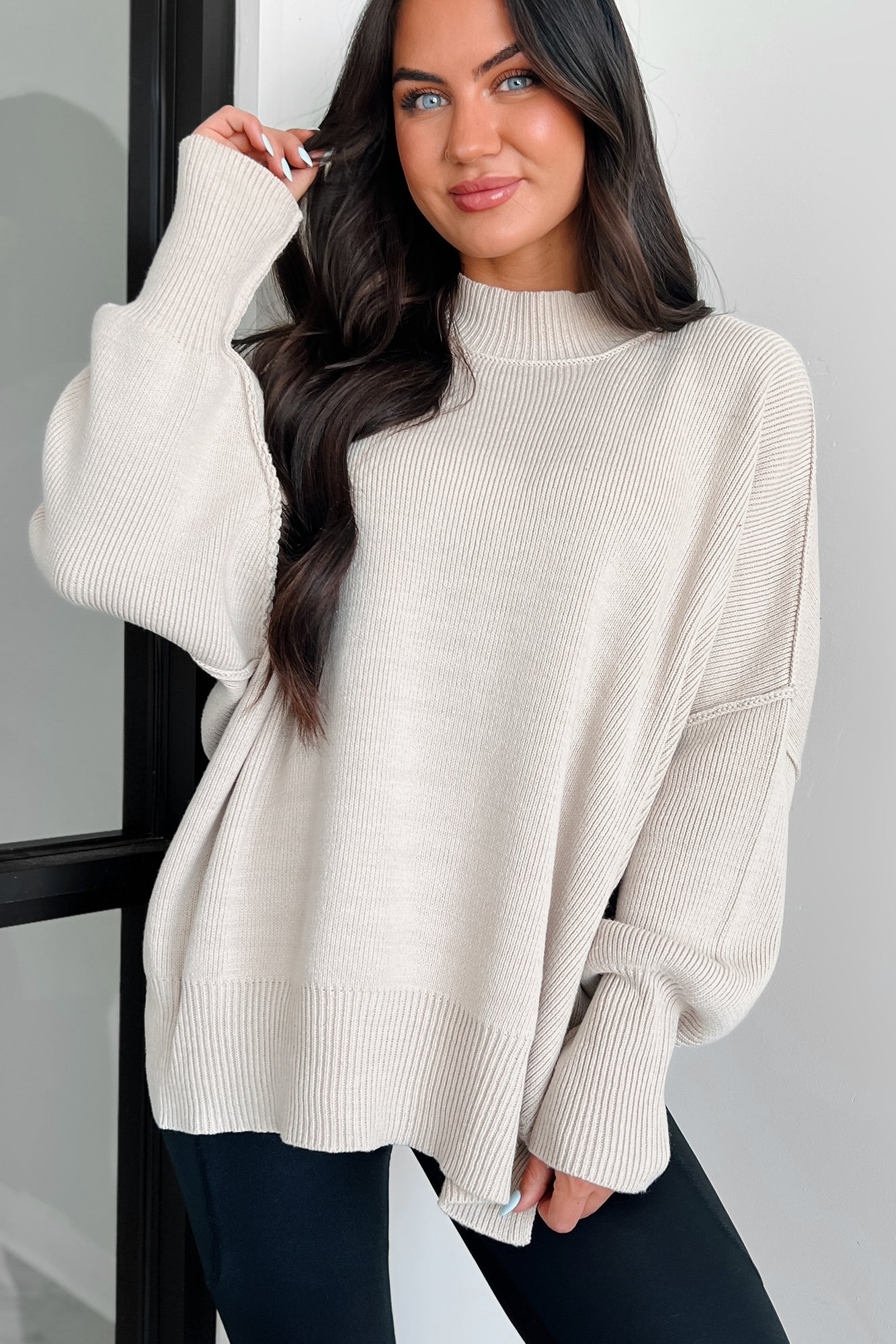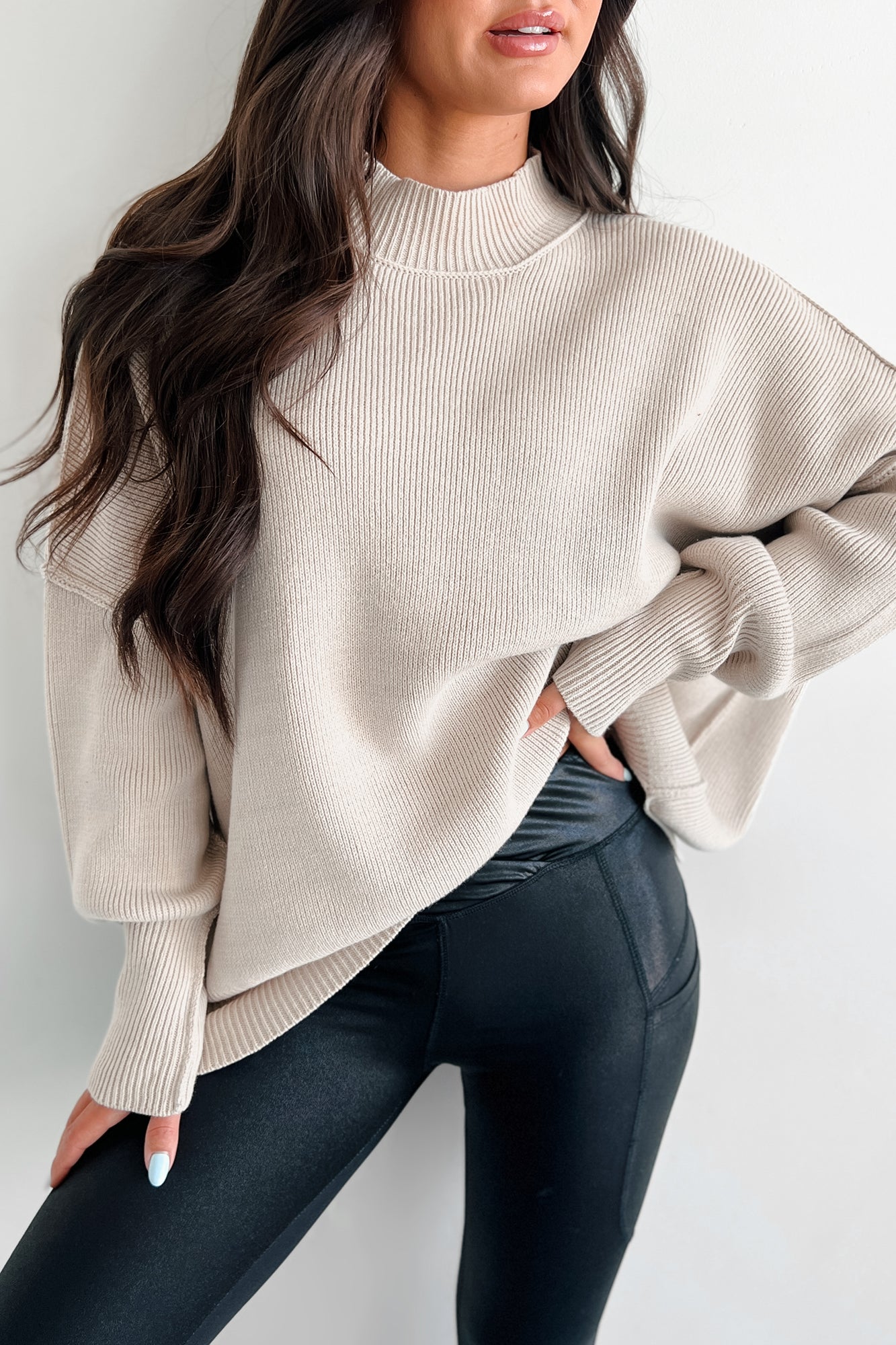 Auden Oversized Zenana Sweater (Sand Beige)