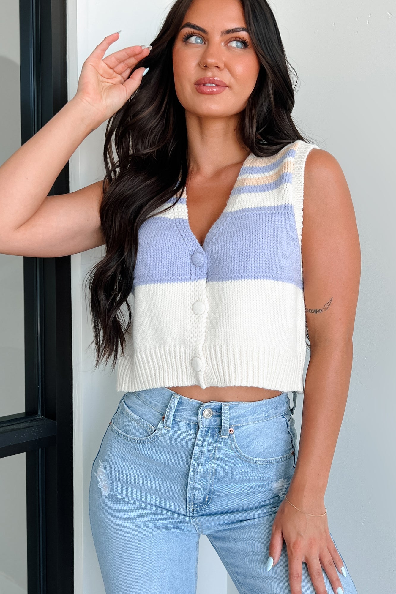 Play It Smart Colorblock Sweater Vest Top (Ivory/Lavender Multi)